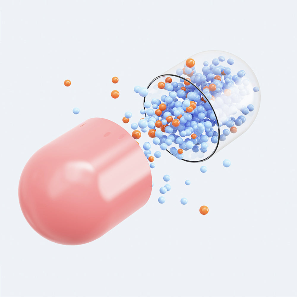 製造工程の最終段階で胃酸によるダメージを防ぐ保護膜をペレットにコーティングしているため、成分をペレット化することで、消化器官を通過する際に有効成分の活性が失われるのを防ぎます。また、酸化・分解されやすい成分も、空気や光との接触からペレット化することで保護することができます。