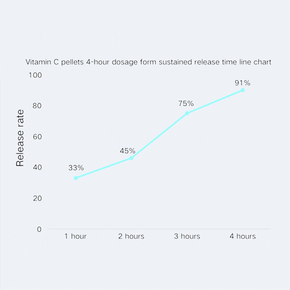 徐放効果は、ペレットの非常に重要な利点です。想像してみてください。鎮痛剤のPEAなどの機能性成分を同じ用量で摂取すると、徐放ペレットにより、ユーザーは8時間持続する鎮痛効果を感じることができます。この効果は、ユーザーが1日に食べる量を1〜2回減らすことができることを意味し、これにより、投与量と毒性が大幅に減少します。睡眠を促進する製品も、GABAなどの徐放効果に適しています。想像してみてください。就寝前に服用して、一晩中質の高い睡眠をとることができます。